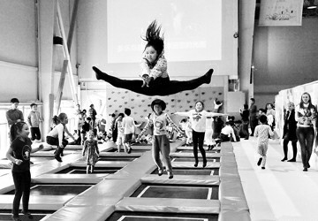 风靡美国、澳大利亚的蹦床运动来到了上海,近日落户位于宝山区殷高路的“上海文教产业园”。占地2600多平方米的乐岛蹦床公园是目前全国最大的蹦床主题公园,分为拓展训练区、欢乐孩童区、自由跳跃区、太空漫步区、灌篮高手区、躲避球区、海绵池区。娱乐蹦床是近几年开始在国内逐渐流行的一种新型健身项目,让参与者体验跳跃的乐趣,并充分发挥身体多个部位的协调能力。 (杨建正摄影报道)