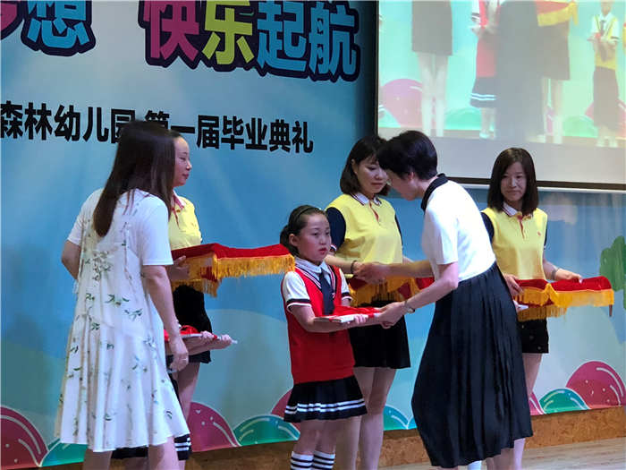 又是一年毕业季,这个六月,是洒泪告别,深深感恩的季节。这个六月,是挥手相送,依依不舍的季节。6月22日上午,我们一同迎来了2018年绿森林幼儿园第一届大班毕业典礼“放飞梦想,快乐起航”。全体大班的家长和师生欢聚在大礼堂,共同回顾孩子们成长的足迹、分享孩子们成长的快乐。 随着大班全体幼儿的集体诗朗诵表演《毕业诗》,毕业典礼正式拉开帷幕。高境镇顾主任及我园胡园长致辞,顾主任向即将成为小学生的小朋友们表示最热烈的祝贺,对绿森林幼儿园的未来发展表达了殷切的希望。胡园长将对孩子们的不舍与祝福化成一句句殷切的叮咛,将对全体教职工与家长们的感谢化成一声声深深的感激。家长代表致辞,道出了所有大班家长的心声,表达了三年来对幼儿园、对老师的感激之情,并对孩子们的未来表示了深切的祝愿。 整台节目形式多样:有歌表演《爱上幼儿园》、舞蹈《我上一年级》、武术《精忠报国》、小提琴表演《同桌的你》……精彩纷呈的节目充分地展示了孩子们才艺,并不时博得家长们热烈的掌声。整场毕业典礼中,孩子们用真情的表演回忆着在幼儿园成长的点点滴滴,传达着对老师真诚的谢意和对幼儿园三年的生活无限的眷念。看着孩子们从小班开始到大班的视频回顾,家长们也充分感受到了孩子们飞跃的进步,见证孩子们的幸福成长。最后,毕业典礼内场表演在一曲深情的《毕业歌》歌声中落下了帷幕,孩子们又转向外场——操场,高喊着“我们毕业啦!”放飞自己的梦想。 毕业典礼是短暂的,但幼儿园生活的回忆却是甜蜜而长久的。愿孩子们的成长之路永远有喜悦相随、有歌声常伴、有智慧同在!我们衷心祝福这群可爱的孩子们,在未来的日子里,能展开双翅飞得更高更远! |