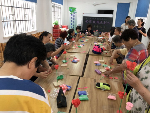 为了丰富居民的业余文化生活,提高居民的动手能力,宝山区公共文化资源配送中心在2018年7月11日上午9:30分为高境一村一居的居民们送来了非遗面塑文化体验——玫瑰花制作特色活动,共吸引了30多位居民前来参加。 活动中,尹老师首先一步步教大家如何制作超轻彩泥玫瑰花,居民拿到材料后迫不及待地做了起来,裹、搓、捏、贴,忙的不亦乐乎。有的兴致勃勃地学着老师的动作,有的虚心向老师请教,还有几个小朋友在互相交换着各自的“玫瑰花”。忙碌中带着快乐,喧闹中体会真情:夕阳护朝阳,朝阳助夕阳。一幕幕充满人情味的镜头温暖了每个人的心。 在这其乐融融的环境下,大家的“玫瑰花”“竞相开放”,一朵比一朵娇艳,一朵比一朵温暖。这些凝结了邻里真情的面塑玫瑰花是这个夏天最美丽,最珍贵的点缀! 此次活动不仅令居民们享受了面塑制作的魅力,而且令邻里关系更为和睦;令居委与民众的心更为贴近;更令社区文化生活更为精彩纷呈! |